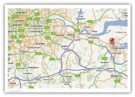 Location map, showing the factory premises within the Medway City Estate.